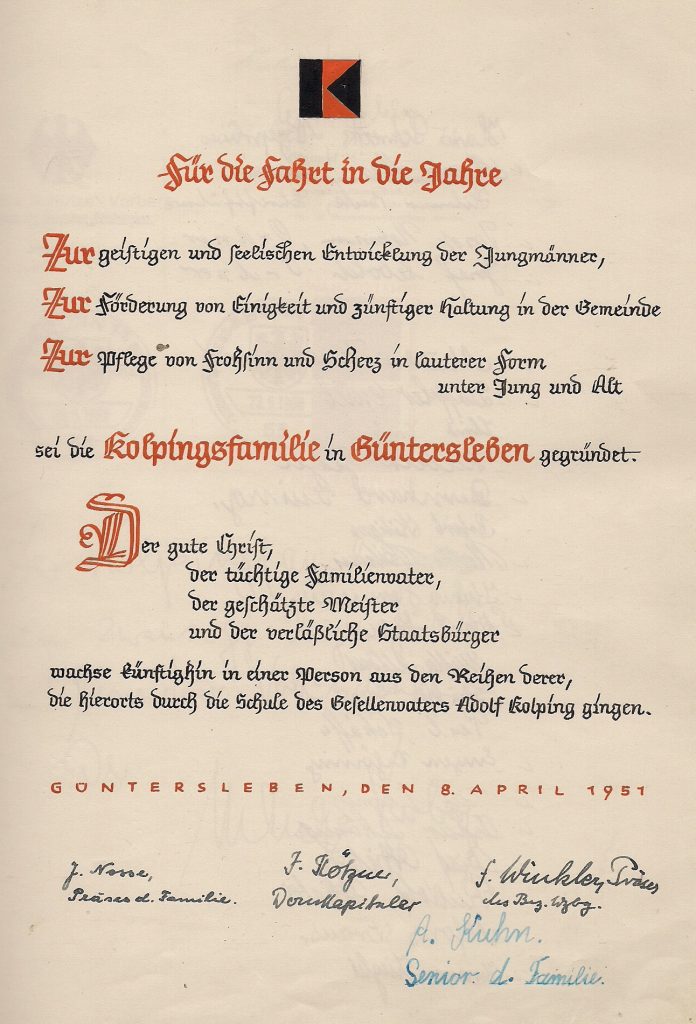 sei die Kolpingsfamilie in Güntersleben gegründet.