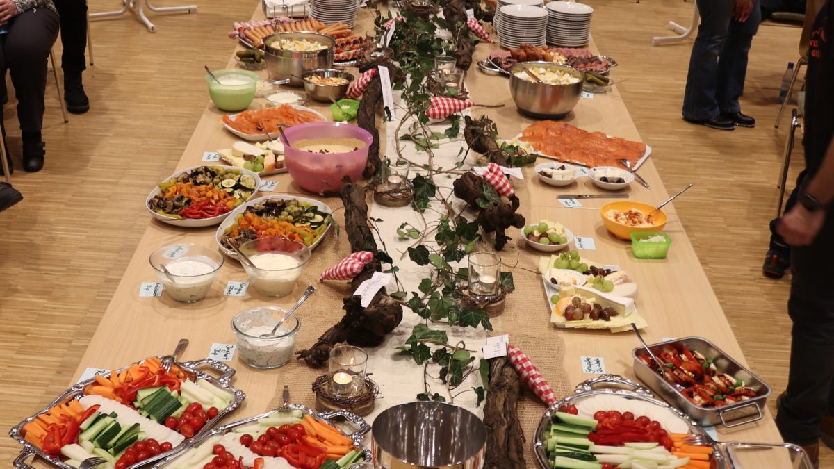 Leider konnten sowohl von den Jubilaren (insgesamt 34), als auch von den neu aufgenommenen Mitgliedern (39 x Jugend, 32 x Erwachsene) nicht alle anwesend sein. Dies störte unsere Gäste jedoch nicht, denn so ging es schneller zum gemütlichen Teil des Abends über. Unsere Kolping Big Band schmetterte noch ein paar Lieder während das Buffet für ein gemeinsames Abendessen aufgebaut wurde, an dem sich dann alle reichlich bedienten.